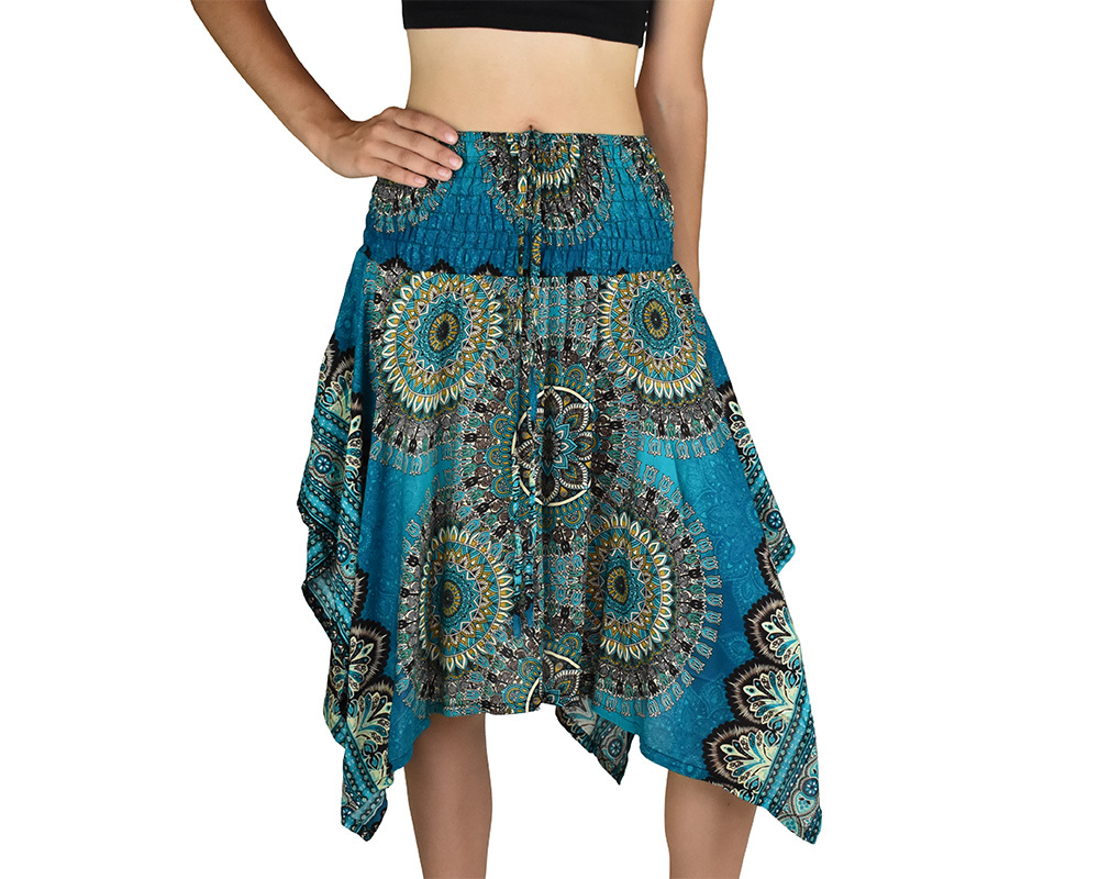 Sukně krátká TUNDE, mandala trojzubec, tyrkysová, var. A