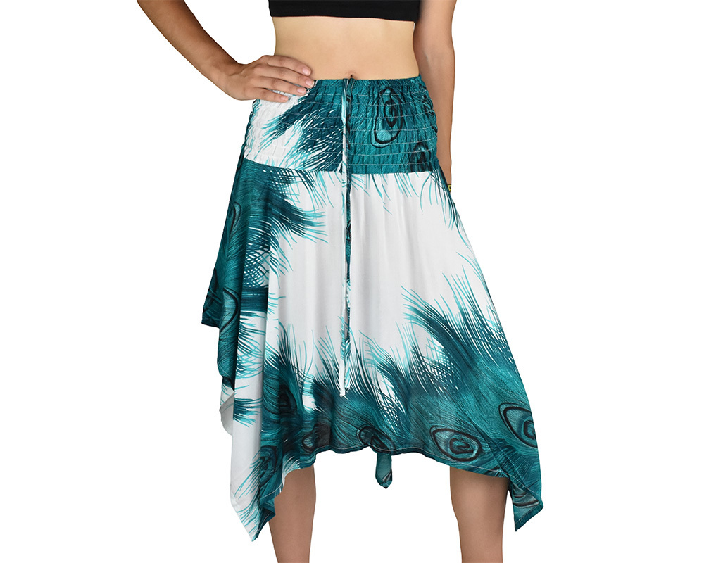 Sukně krátká TUNDE, tyrkysovo - bílá, paví pera