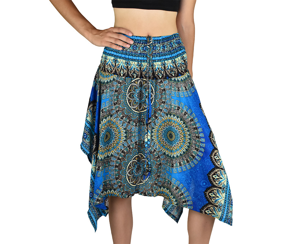 Sukně krátká TUNDE, mandala trojzubec, modrá