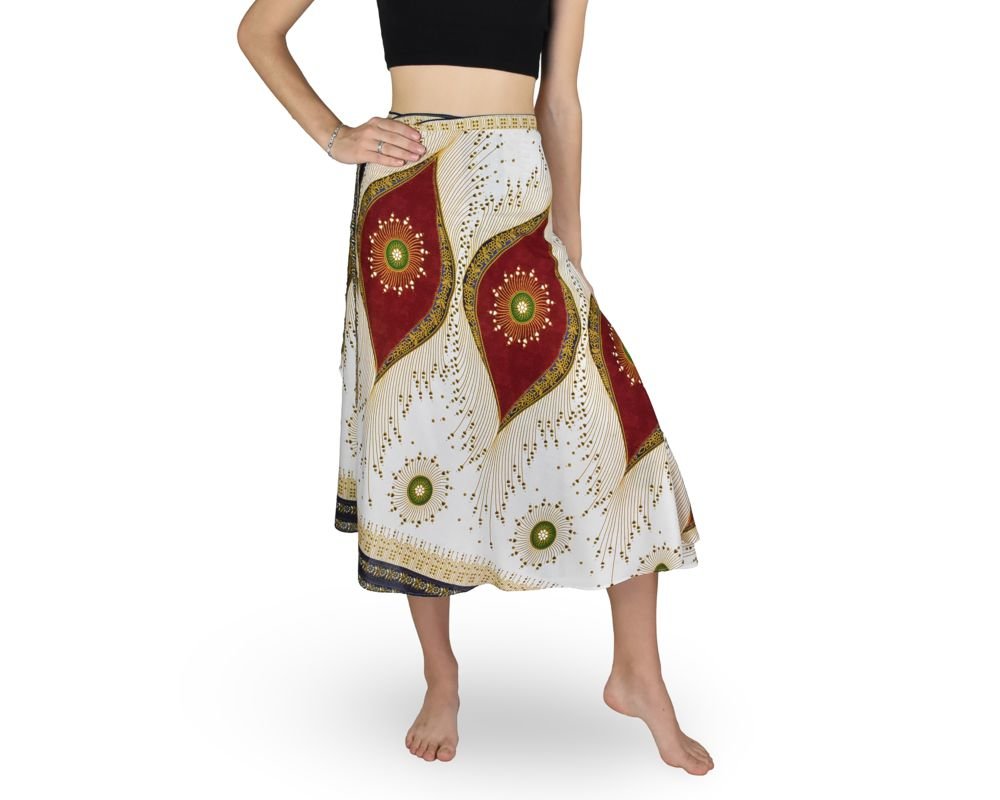 Pohodlná letní zavinovací sukně se zavazováním v pase.