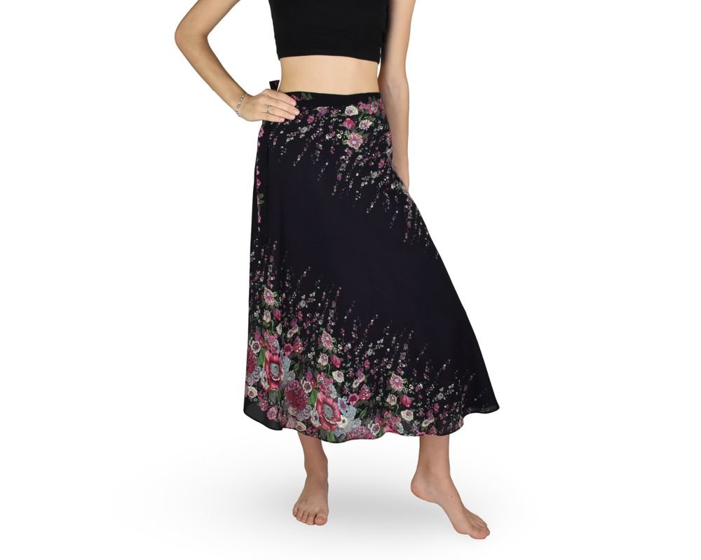 Pohodlná letní zavinovací sukně se zavazováním v pase.