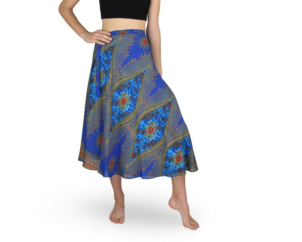 Pohodlná letní zavinovací sukně se zavazováním v pase.