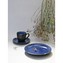 Na klasických tvarech nádobí ustoupil výrazným barvám. Námořnická modrá, stírané glazované pozadí zdobené bílými tečkami, kontrastující s tmavě hnědou - přecházející do černých odstínů spodní části.