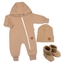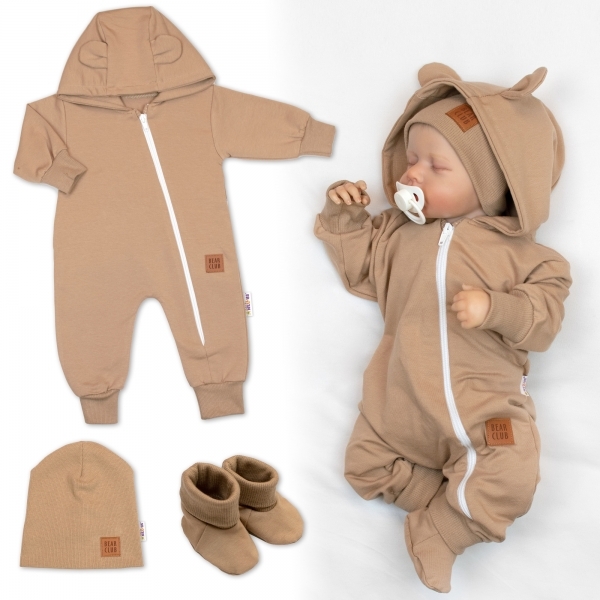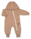 Rostoucí teplákový overal pro miminko, čepice, botky, 3D, Nature - karamelová; 56/62 (0-3m)
