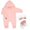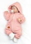 Bavlněný oteplený overálek s kapucí, rukavičky, botky, 3D sada Nature - korálová, vel. 68; 68 (3-6m)