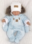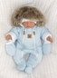 Zateplená zimní kombinéza s kapucí + rukavičky. Kapuce má okouzlující kožešinku. Čepice a šály zobrazené na fotografiích nejsou součástí. Materiál:Vnější strana: 100% polyester.Vnitřní/podšívka: 100% bavlna. Umělá kožešina na kapuci není odnímatelná.jakost.Detailní rozměry:Vel. 56 - délka 40 cm,...