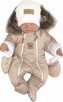 Zateplená zimní kombinéza s kapucí + rukavičky. Kapuce má okouzlující kožešinku. Čepice a šály zobrazené na fotografiích nejsou součástí. Materiál:Vnější strana: 100% polyester.Vnitřní/podšívka: 100% bavlna. Umělá kožešina na kapuci není odnímatelná.jakost.Detailní rozměry:Vel. 56 - délka 40 cm,...