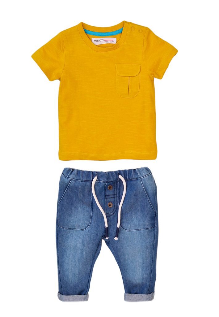 Chlapecký set - tričko a kalhoty džínové, Minoti, Planet 4, žlutá - 86/92