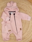 Oteplený dětský overálek se šlapkama a kapucí, Kazum, pudrový, vel. 68; 68 (3-6m)