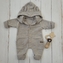 Dětský pletený overálek s odepínací kapucí - oříškový; 56/62 (0-3m)