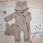 Oteplený dětský overal bez šlapek s kapucí + čepička, 2D, Kazum, cappuccino, 62; 62 (2-3m)