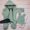 Oteplený dětský overal se šlapkama a kapucí + čepička, 2D, zelená, vel. 68; 68 (3-6m); zelená; bavlna, elastan