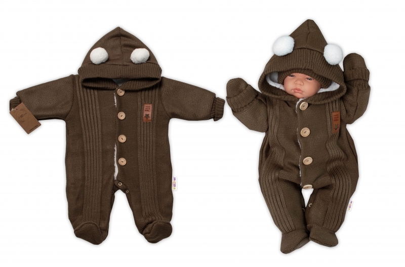 Pletená kombinéza/overal LUX STAR s kožíškem - dvouvrstvá, hnědá, vel. 68; 68 (3-6m)