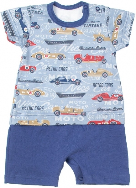 MBaby Bavlněné body s nohavičkami Retro Cars - jeans, vel. 68