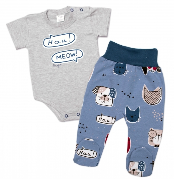 Sada obsahuje: polodupačky, body s krátkým rukávem, zapínání u krku.Materiál: 95 % bavlna, 5% elastan.1. jakost.Rozměry polodupaček:Vel. 68 délka k patičkám 38 cm, pas (měřeno v klidu) 2x15cm.Vel. 74 délka k patičkám 41 cm, pas (měřeno v klidu) 2x16cm.Rozměry body:Vel.68 hrudník - 21 cm x 2,...