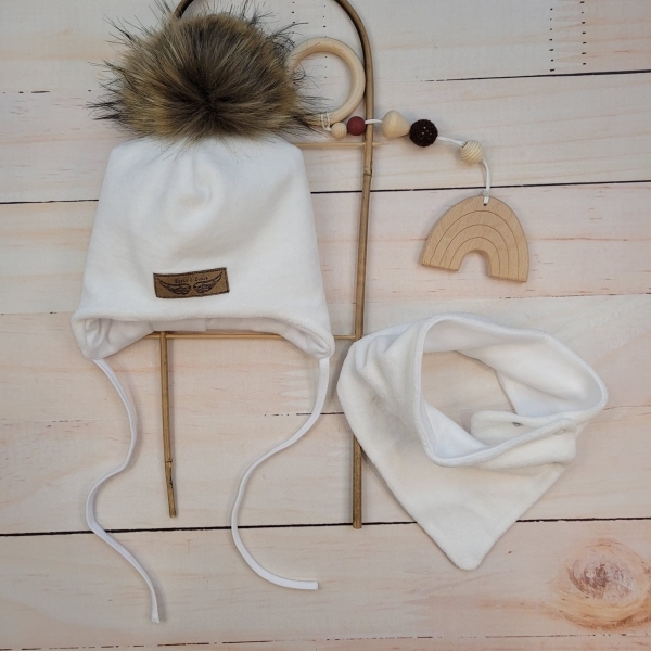 Čepici zdobí půvabná kožešinová bambulka.