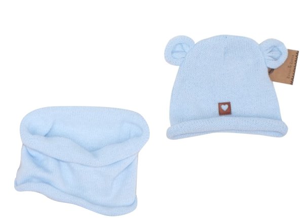 Z&Z Pletená čepice s oušky + komínek, světle modrá, vel. 6 - 12 měsíců; 68-80 (6-12m)