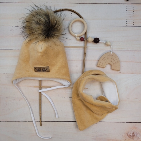 Čepici zdobí půvabná kožešinová bambulka.