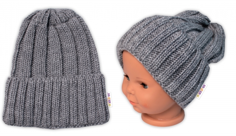 BABY NELLYS Zimní nadčasová čepice Mom and Baby, šedá; univerzální