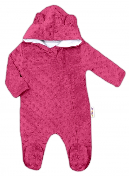 Baby Nellys Kombinézka/overálek MINKY s kapucí a oušky - sytě růžová, vel. 80; 80 (9-12m)