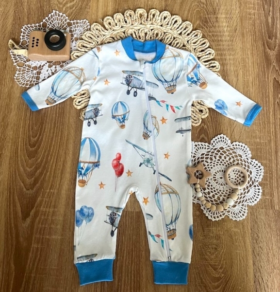 Kojenecký overal bez šlapek Mamatti, Balón, bílo/modrý, vel. 80; 80 (9-12m)