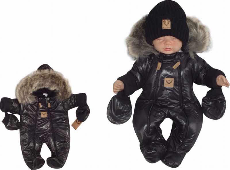 Zateplená zimní kombinéza s kapucí + rukavičky. Kapuce má okouzlující kožešinku. Čepice a šály zobrazené na fotografiích nejsou součástí. Materiál:Vnější strana: 100% polyester.Vnitřní/podšívka: 100% bavlna. Umělá kožešina na kapuci není odnímatelná.jakost.Detailní rozměry:Vel. 56 - délka 40 cm,...