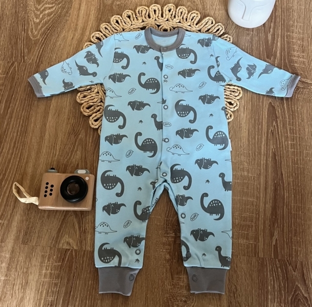 Kojenecký overal bez šlapek Mamatti, Dino park - modré s potiskem, vel. 80; 80 (9-12m)