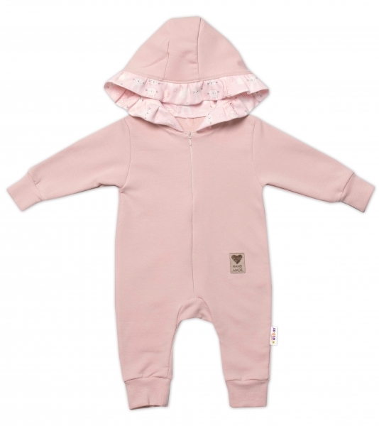Teplákový overal s kapucí a volánkem, New Bunny - pudrová, vel. 86; 86 (12-18m)