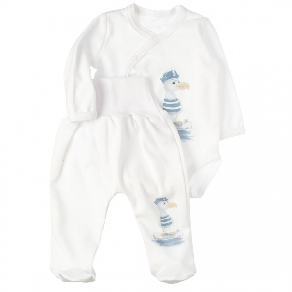 MBaby 2-dílná kojenecká sada body s dl.rukávem zap.bokem + polodupačky, Duck boy, vel. 62; 62 (2-3m)