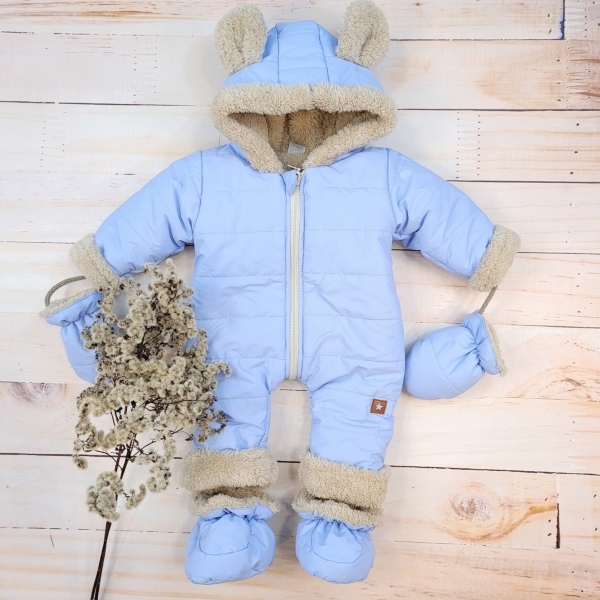 Zimní prošívaná kombinéza s kožíškem a kapucí + rukavičky + botičky, Z&Z - modrá; 56 (1-2m)