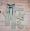 Oteplený dětský overal bez šlapek s kapucí, čepička + botičky, 3D, Kazum, mátový, vel. 74; 74 (6-9m)