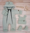 Oteplený dětský overal bez šlapek s kapucí, čepička + botičky, 3D, Kazum, mátový, vel. 80; 80 (9-12m)