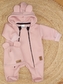 Oteplený dětský overálek se šlapkama a kapucí, Kazum, pudrový, vel. 62; 62 (2-3m)