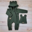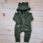 Oteplený dětský overal bez šlapek s kapucí + čepička, 2D, khaki; 56 (1-2m)