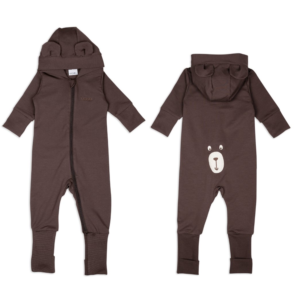 Moniel Dětský rostoucí teplákový overal Medvěd Basic Chocolate 80/86 cm