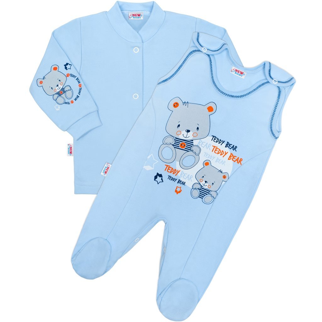 Bavlněná kojenecká soupravička New Baby pro miminka v krásné pastelové barvě. Soupravička obsahuje dupačky a kabátek. Dupačky jsou jednobarevné s obrázkem medvídka a s nápisem Teddy Bear. Praktické zapínání na cvočky na ramínku a mezi nožičkami. Kabátek je jednobarevný a má praktické zapínání na cvočky po celé délce. Složení: 100% bavlna.