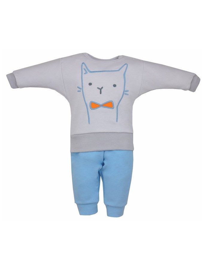 Dětská 2-dílná soupravička Koala Robin. Součástí soupravičky jsou tepláčky a mikinka. Mikinu zdobí krásný velký obrázek kočičky, a je originální právě tím, že má netopýří rukávky. Zapínaní na cvočky na ramínkách. Tepláčky díky širokému lemu na nohavičkách a v pase prokáží dítěti dobrou službu. Je vyrobena z velmi příjemného a měkkého materiálu. Materiál: Mikina:100% bavlna.Tepláčky: 57% bavlna, 3% elastan, 40% polyester.