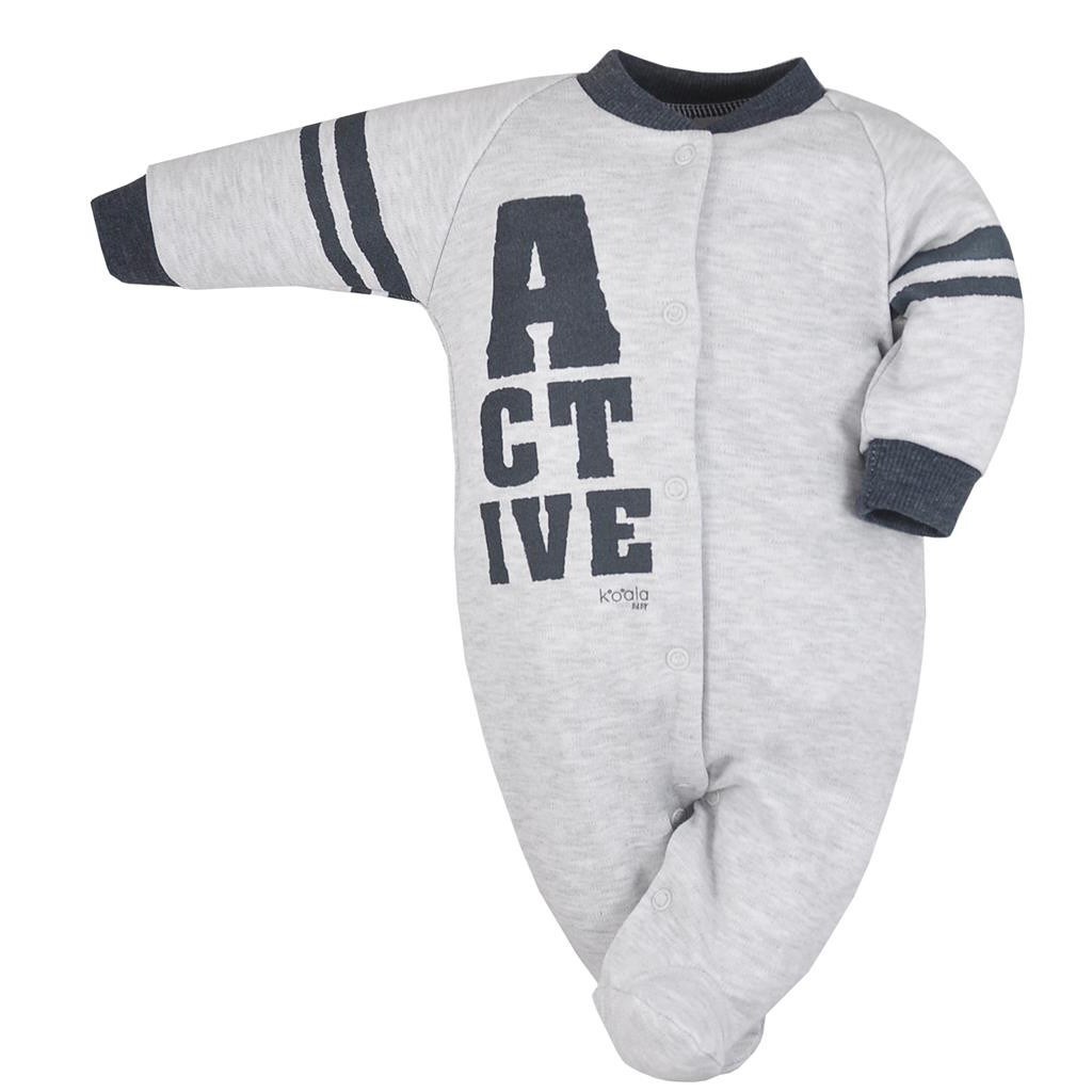 Overal s dlouhým rukávem Koala Active. Přední strana je zdobena nápisem ACTIVE. Zapíná se na cvočky po celé délce a mezi nožičkami. Při jakémkoliv pohybu jsou zádička miminka stále přikrytá. Materiál: 100% bavlna. prečítať celé