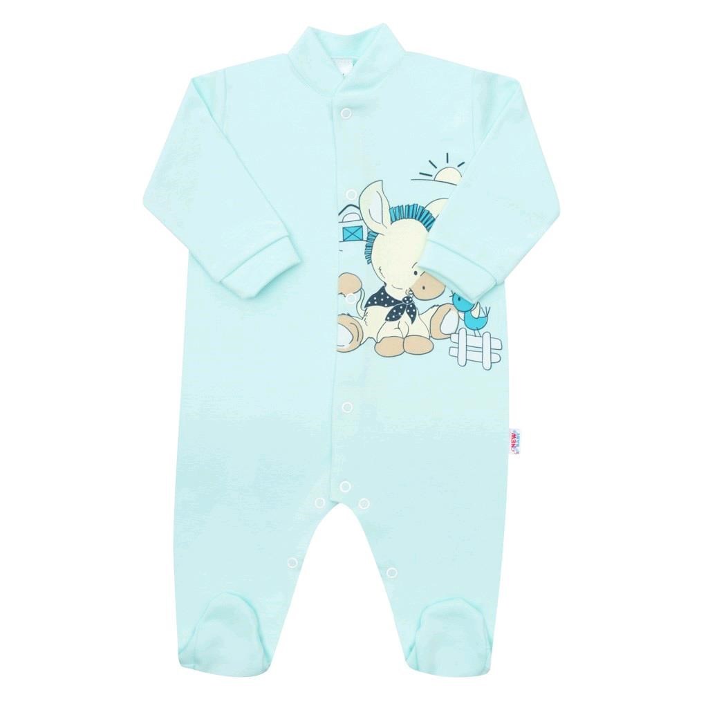 Kojenecký overal New Baby Kamarádi s veselým obrázkem pejska, kočičky a nápisem best friends. Overal je jednobarevný s šedými lemy. Má zapínání na cvočky po celé délce. Složení: 100% bavlna. Rozměry: obvod kolem hrudníku cca 55 cm, délka od rozkroku cca 17 cm, délka rukávu cca 21 cm, celková délka cca 52 cm.
