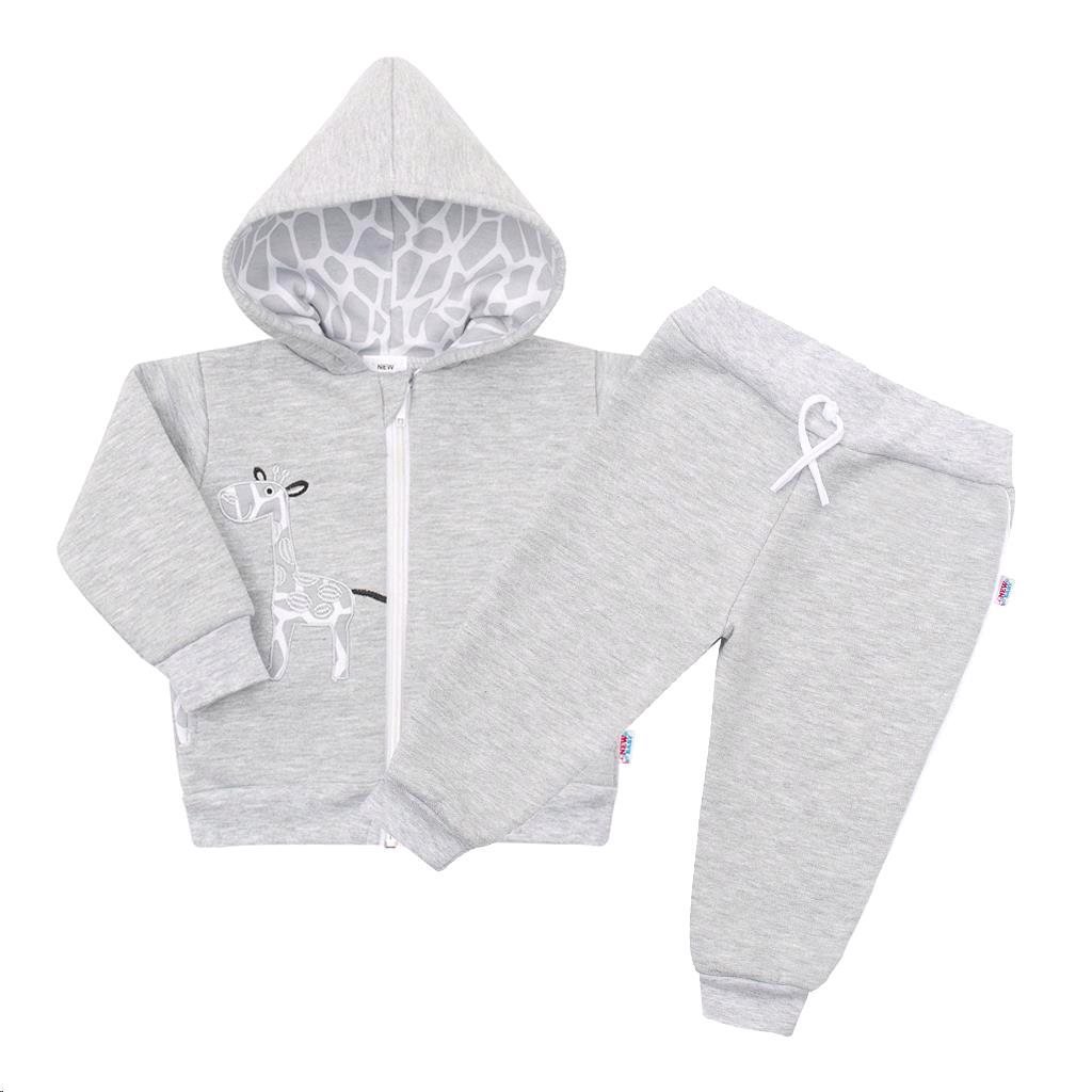 Dětská 2-dílná soupravička české značky New Baby Žirafa. Součástí soupravičky jsou tepláčky a mikinka, které jsou z vnitřní strany počesané, a právě proto krásně hřejivé. Mikinku zdobí roztomilý obrázek žirafky, má zapínaní na zip po celé délce, hlubší kapsičky po stranách, široký pružný lem v...