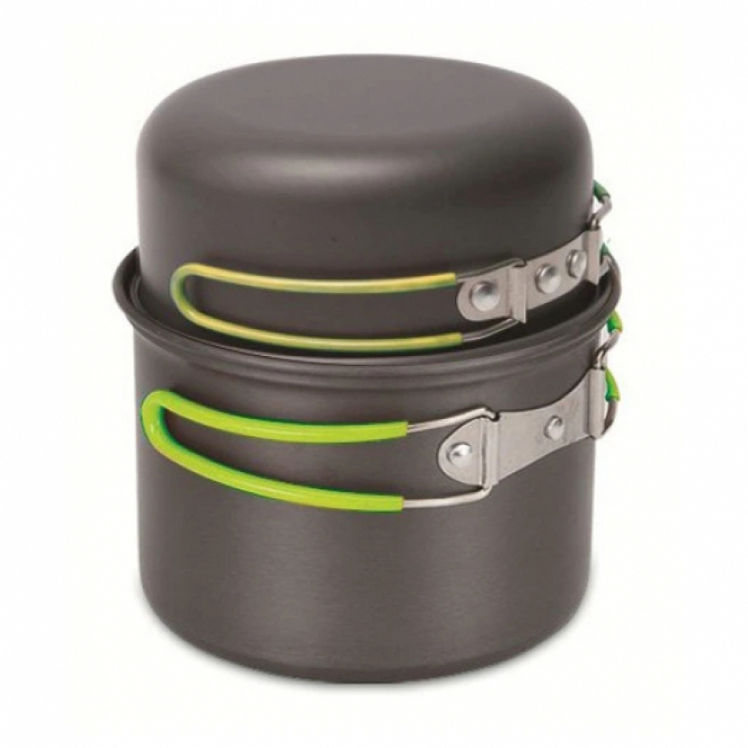 Set dvou hrnců se dvěma hlubokými poklicemi vyrobeny z hliníku s anodizovaným povrchem.Sklopné rukojeti jsou vyrobeny z ocelového drátu, opatřeného silikonovou žáruvzdornou bužírkou.Anodizace (též Eloxování) vytváří na povrchu materiálu velmi pevnou a tvrdou vrstvu oxidu hliníku, která brání...