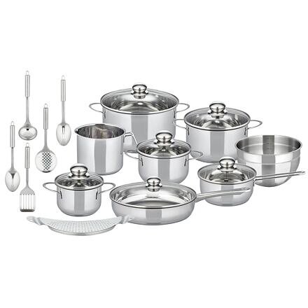 Kompletní sada hrnců 20 ks Prima Tavola ELO BASICStartovací sada nádobí Prima Tavola od značky ELO je ideální volbou pro každého, kdo hledá kompletní, kvalitní a odolné kuchyňské nádobí pro každodenní vaření. Sada obsahuje hrnce, pánev, rendlík, mlékovar, nerezovou mísu a praktické kuchyňské...