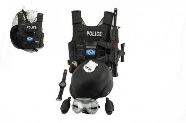 Sada policajnej pištole a prilba s doplnkami plast 38cm v sieťke