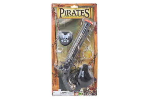 Pirátská sada obsahuje pistoli, náušnici, prstýnek, sáček na peníze a pásku přes oko. Rozměry balení cca 19 x 38 x 4 cm. Věk 3+ prečítať celé