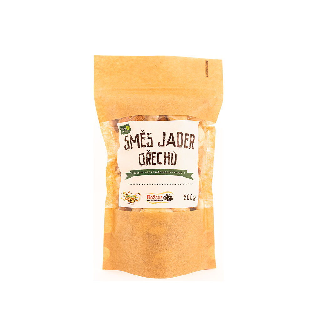 Směs jader ořechů 200 gAdministrativní zařazení: Suché skořápkové plodySložení: Mandle (USA), lísková jádra (Gruzie), kešu (Vietnam), para (Bolívie).Země původu: USA, Gruzie, BolívieVýrobek může obsahovat stopy arašídů, jiných skořápkových plodů oxidu siřičitého nebo sezamu.Skladování: Skladujte...