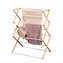Tento sušiak je vyrobený z kombinácie bambusu a kovu, čo zaručuje pevnosť a odolnosť pri zachovaní prírodnej estetiky. Bambusové prvky produkt obohacujú o prírodný vzhľad, ktorý sa výborne hodí do rôznych interiérov, na balkón či záhradu. Vďaka rozmerom 74 x 100 x 43 cm poskytuje dostatok priestoru na sušenie rôznych druhov bielizne - od drobných kúskov až po väčšie prikrývky.