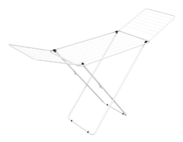 Sušák se sklopnými protiskluzovými nohami a skládacími křídly. Vyroben z oceli. Sušící plocha 20 metrů.