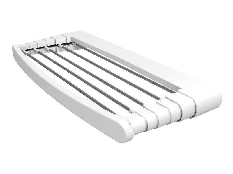 Sušák ideální pro malé byty nebo drobné prádlo se sušící plochou 5 metrů. Elegantní a chytré řešení, umožňující šetřit místo. Když jej potřebujete, stačí jednoduše vytáhnout šňůry, po dosušení jej můžete opět složit tak, že z něj máte jen malou, praktickou poličku. Robustní konstrukce z pryskyřice a hliníkových drátů. Pro interiérové i exteriérové využití. Jednoduchý a elegantní design. Sušák je multifunkční: slouží jako polička, když je složený a jako praktický sušák, když je rozložený. Má silné hliníkové dráty, které zabrání mačkání prádla. Je se šrouby a dvěma dvojicemi stěnových závěsů pro použití na dvou různých místech. Vždy je připraven k sušení, nezabírá žádné místo na podlaze.