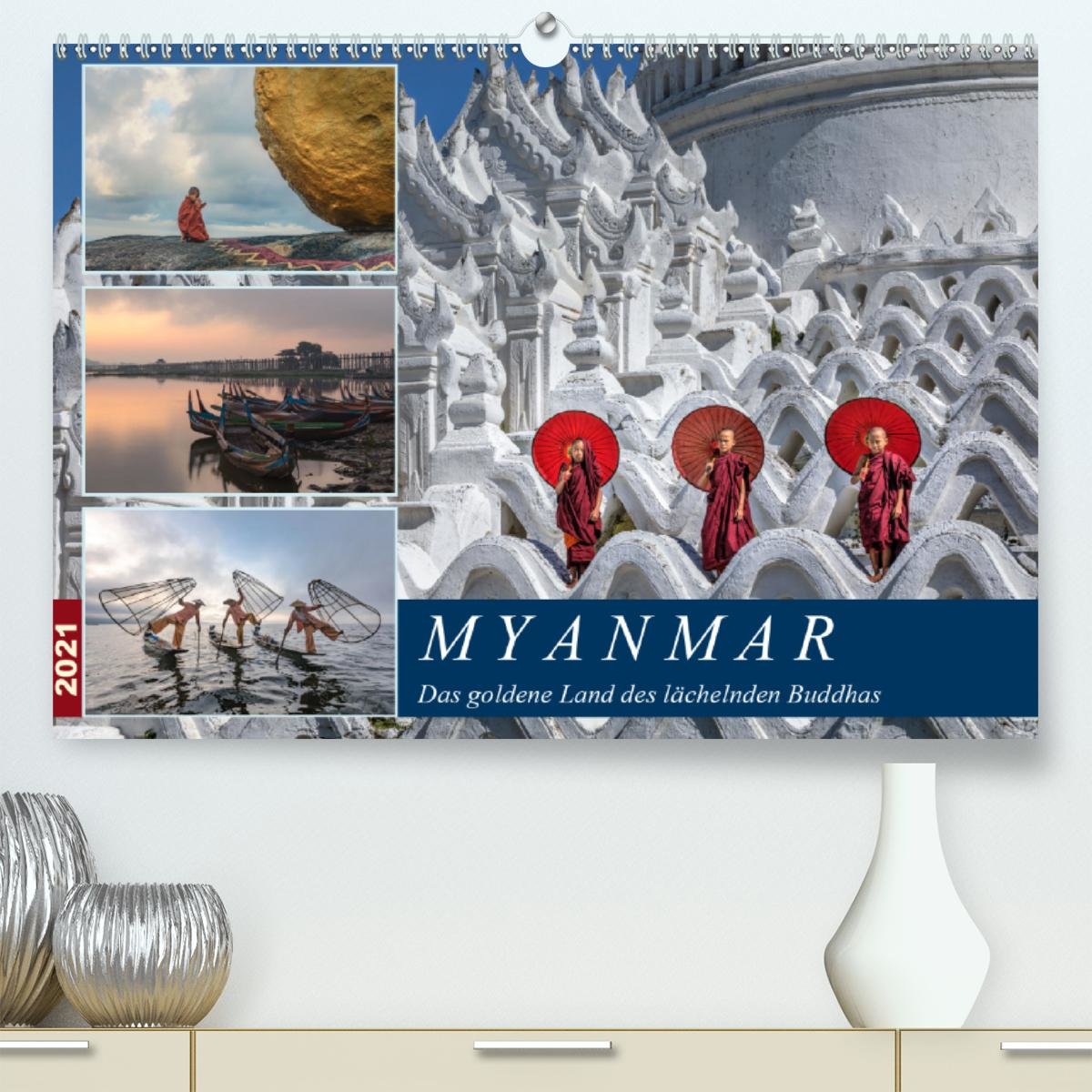 Myanmar, das goldene Land des lächelnden Buddhas (Premium, hochwertiger DIN A2 Wandkalender 2021, Kunstdruck in Hochglanz) (německy)