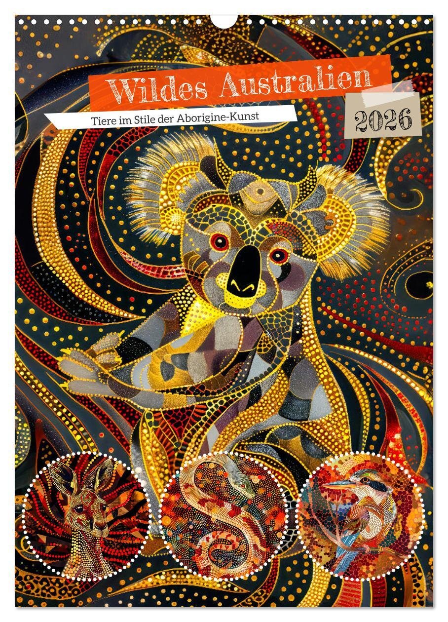 Wildes Australien - Tiere im Stile der Aborigine-Kunst (Wandkalender 2026 DIN A3 hoch), CALVENDO Monatskalender (německy)